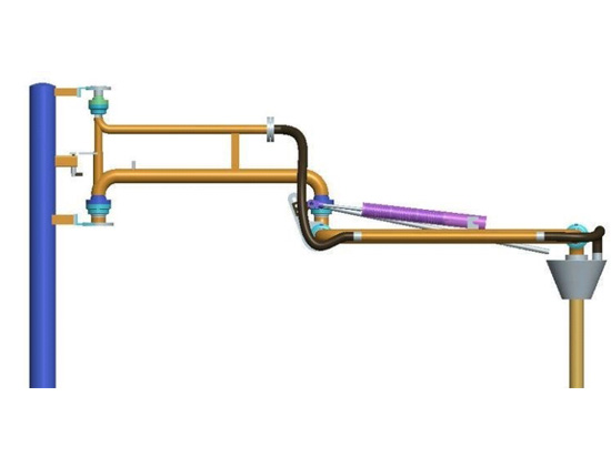 裝車鶴管可分為上裝裝車鶴管和下裝裝車鶴管,以前一般上裝裝車鶴管用的多,人站在平臺上面操作,不是很方便。現在下裝裝車鶴管解決了這個問題,不僅安全快速,而且使用方便。裝車鶴管的液下裝車是指裝車鶴管裝車時垂管(插入管)據罐車底部的高度不得大于200mm,這樣可減少物料噴濺揮發和靜電的產生。