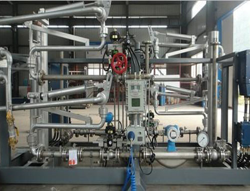 油品定量裝車橇裝組是指將每一個裝車鶴位內的儀表和設備集成在一個專用的框架結構內,儀表和設備包括裝車鶴管、流量計、防溢油靜電報警控制器、壓力變送器、裝車流量控制閥、緊急切斷閥,裝車泵、批量控制器等, 只預留工藝連接口和控制電源和通訊接口,這個整體集成部分稱為裝車橇。與傳統的裝車控制系統就地組裝比較,裝車橇可以節省現場設計和現場施工量,縮短項目工期,提高裝車控制系統的質量。